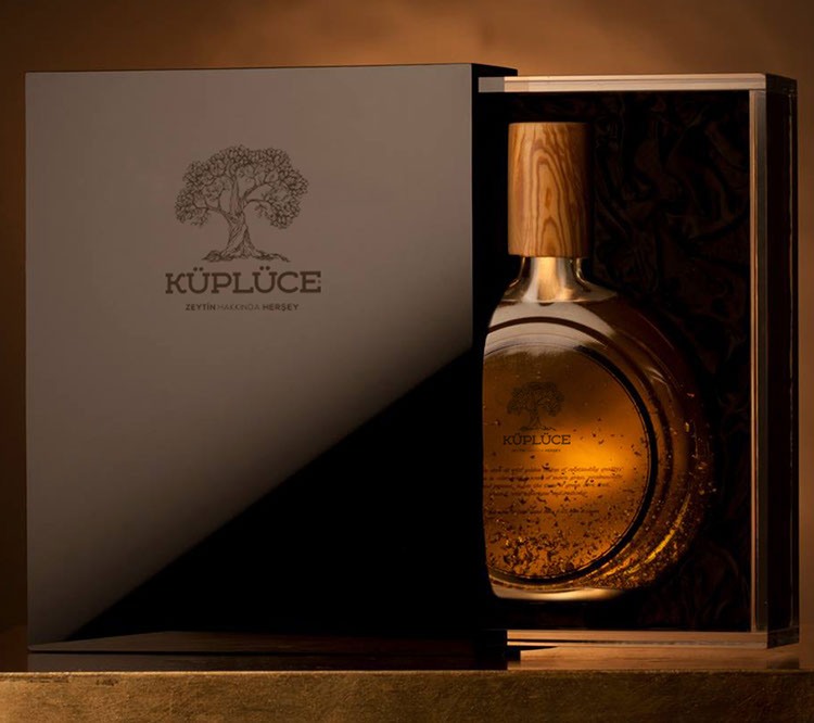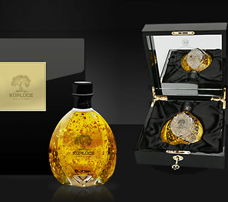 Özel şişesinde ve en özel zeytinyağı ile altın parçacıkları birleştirilir.